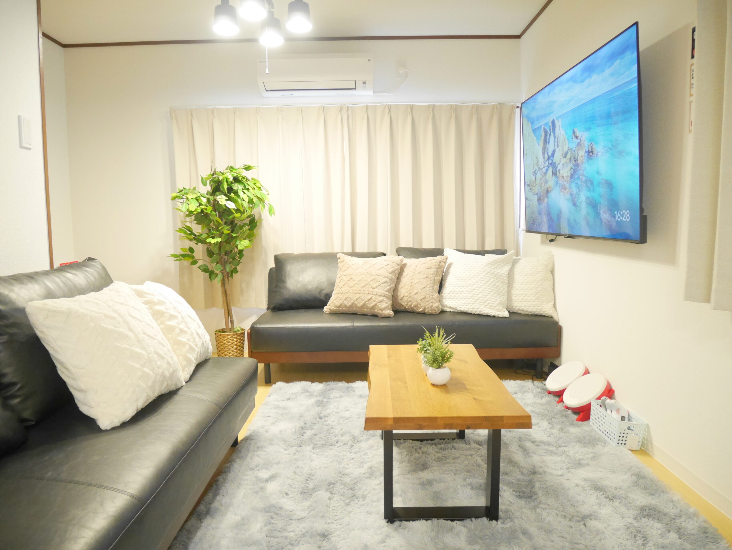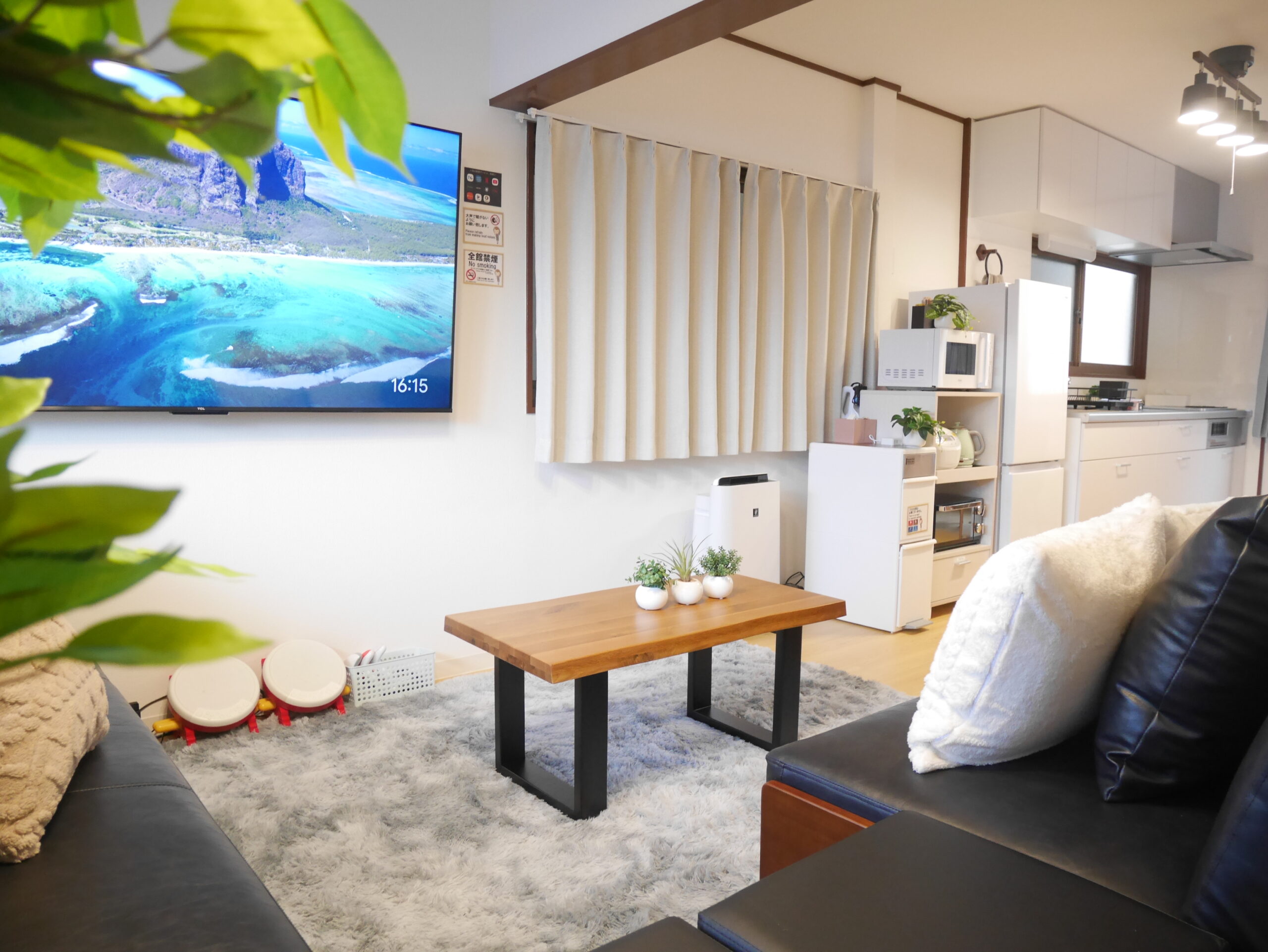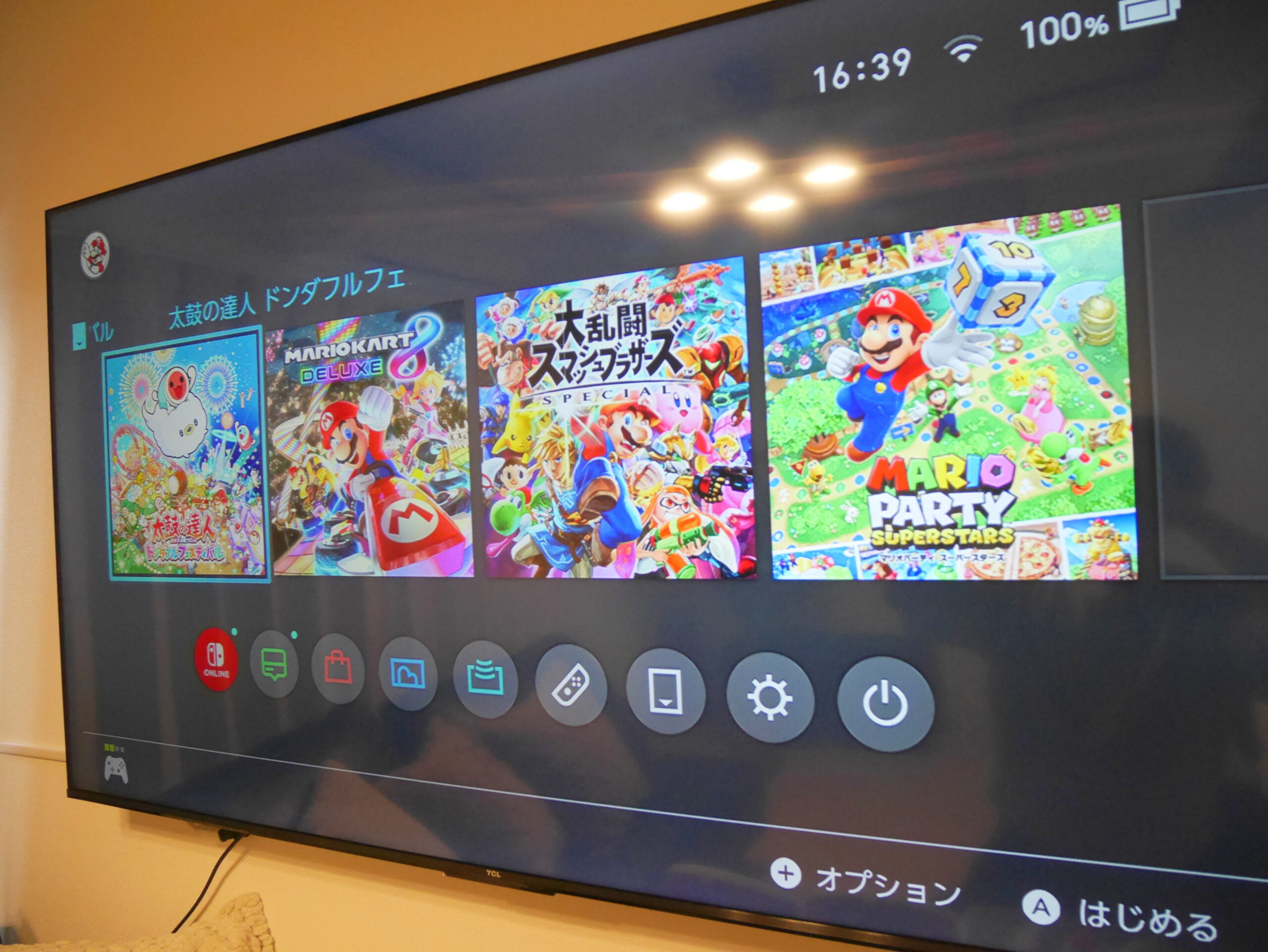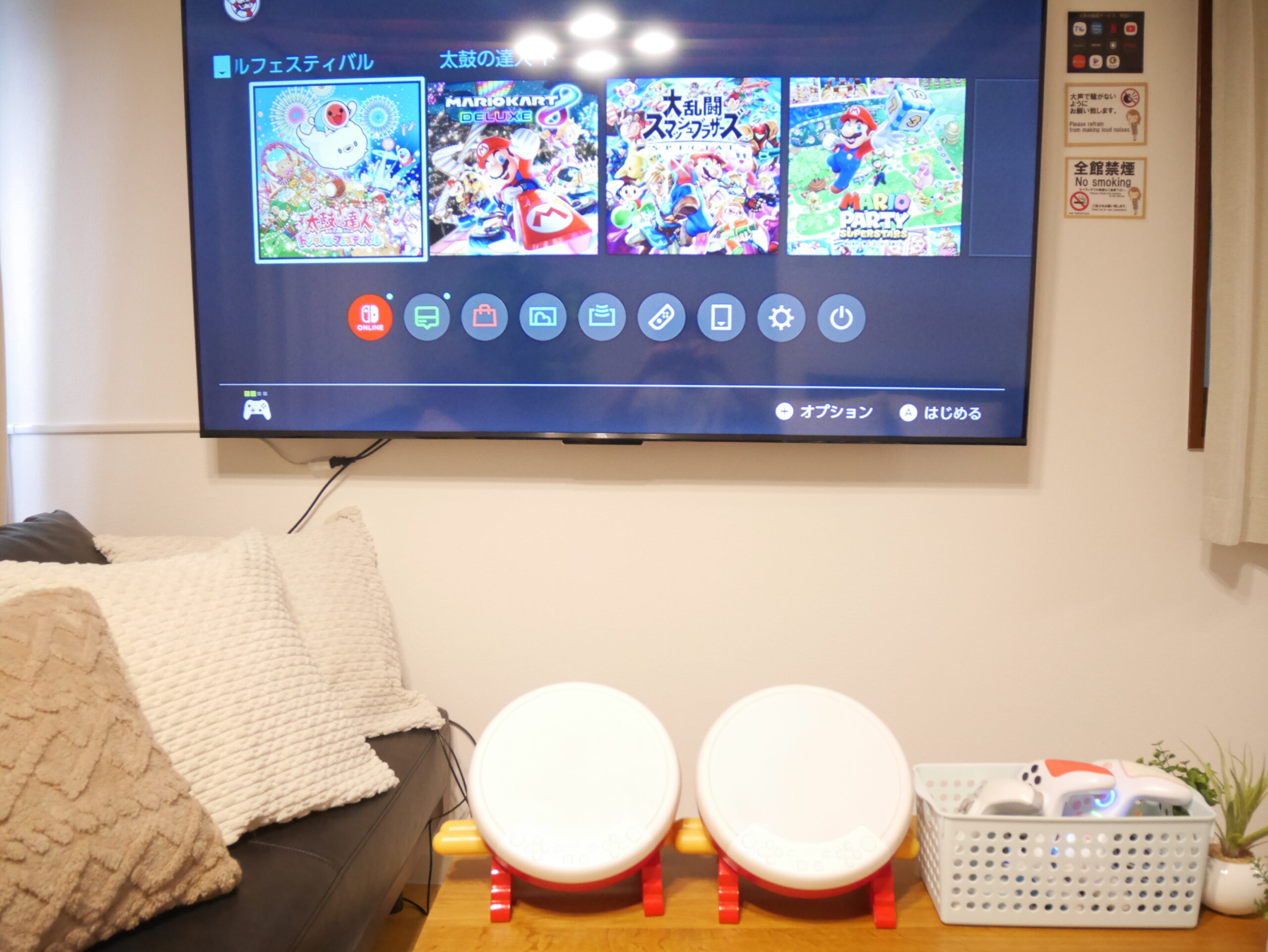 65インチ大型テレビでゲーム、動画配信サービスで楽しむことができます。